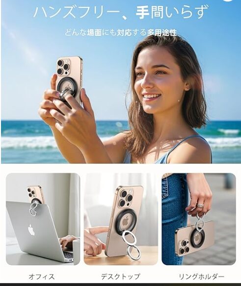 MagSafe対応のスマホリングを探していて、「本当に落ちない?」「スタンドとして使いやすい?」「回転音ってうるさくない?」と気になっていませんか。